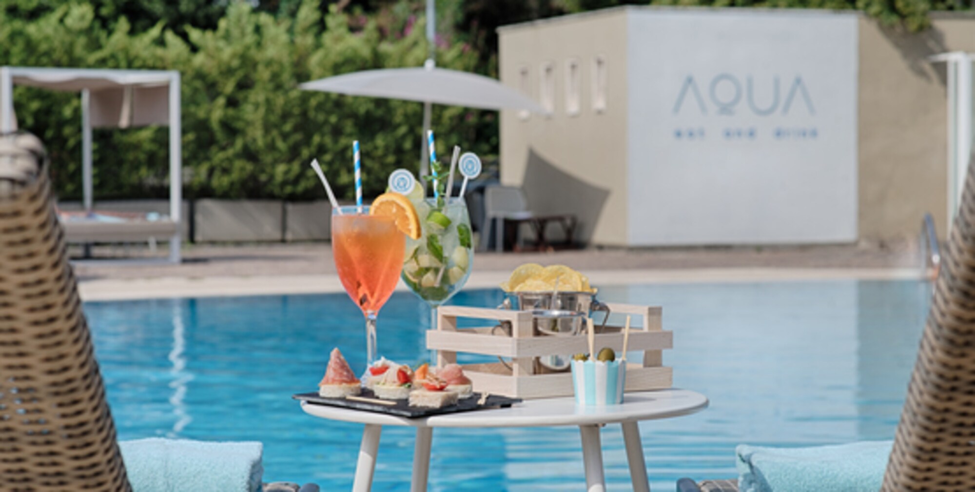 Aqua es un espacio diseñado para que tu experiencia en la ciudad sea inolvidable, combina los sabores auténticos de la cocina mediterránea con las notas afrutadas y frescas en cócteles, creando una mezcla de sensaciones y colores únicos. Disponible en Roma Villa Carpegna, NH Catania Parco degli Aragonesi y NH Palermo.