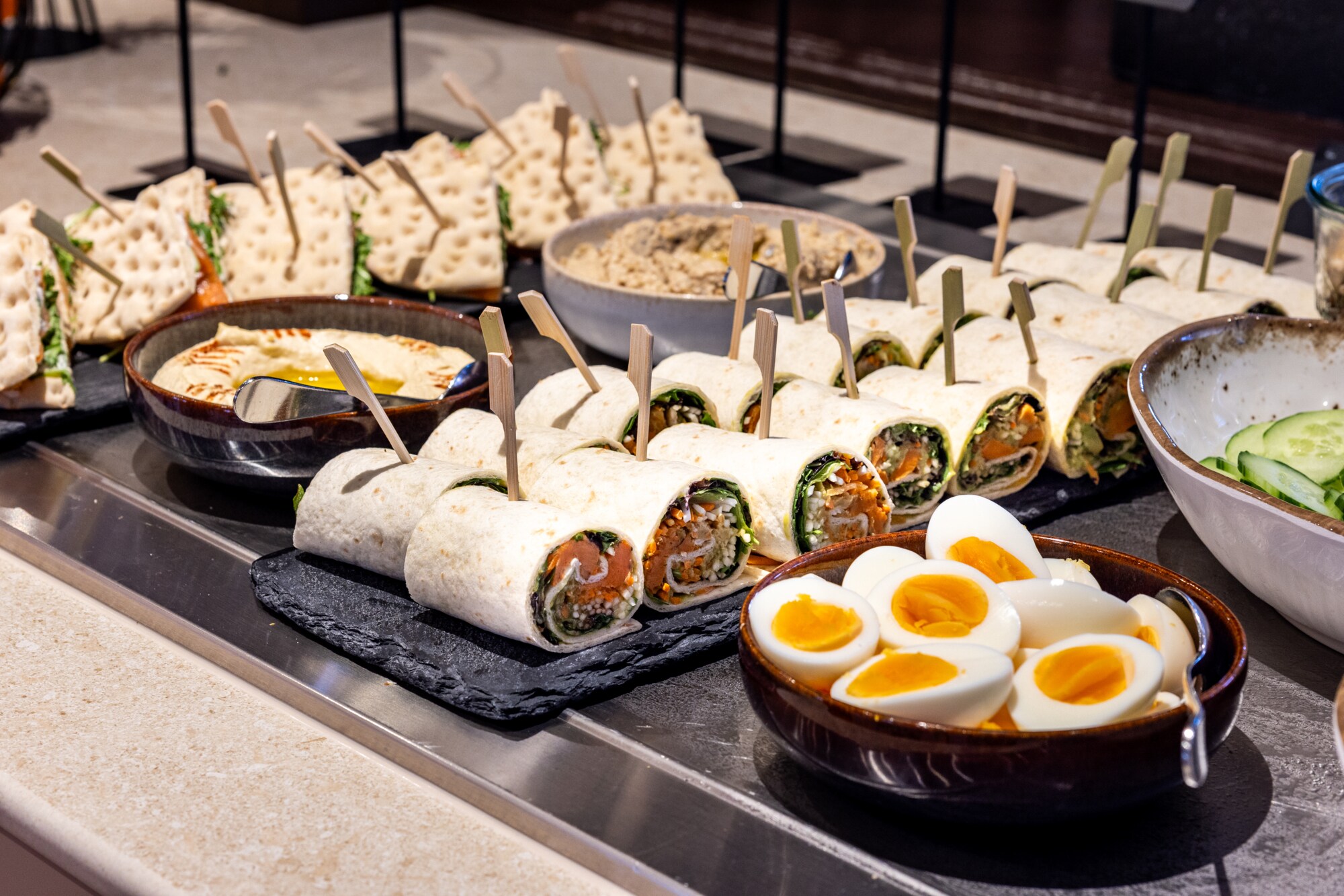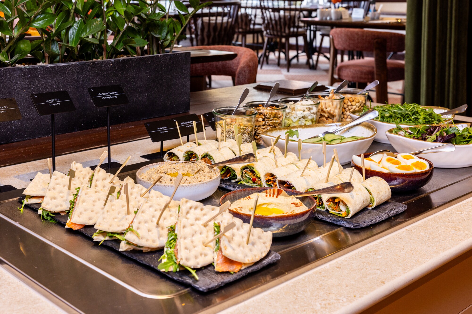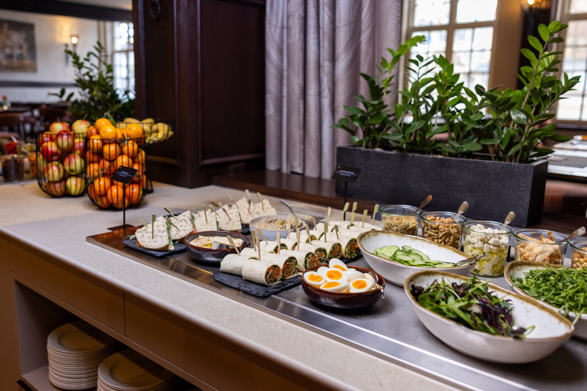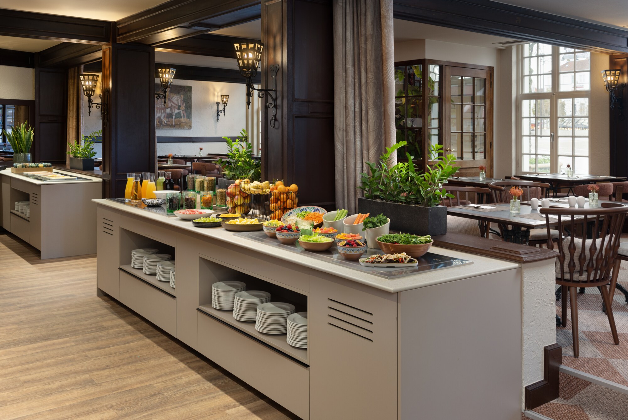 Productos frescos preparados cada mañana, el buffet de desayuno del hotel te asegura empezar el día de una forma sana y equilibrada. El buffet de desayuno incluye una amplia variedad de zumos naturales, bollería, fiambre, quesos, fruta, yogurt, panes y mucho más. También puedes pedir platos calientes a tu gusto. Si eres de los que te gusta madrugar o debes marcharte antes de que el buffet esté abierto, pregunta en recepción por la posibilidad del desayuno para madrugadores.