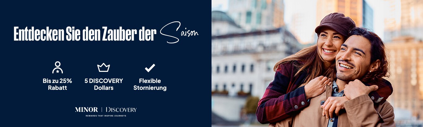 Mitglieder unseres Treueprogramms können zusätzlich bis zu 10 % sparen, sofern die Buchung exklusiv über unsere Websites oder unsere Buchungshotline getätigt wird. Geben Sie Ihre Mitgliedsdetails ein oder melden Sie sich während des Buchungsvorgangs an, um auf diesen zusätzlichen Rabatt zuzugreifen. Der zusätzliche Rabatt gilt vorbehaltlich der Verfügbarkeit.