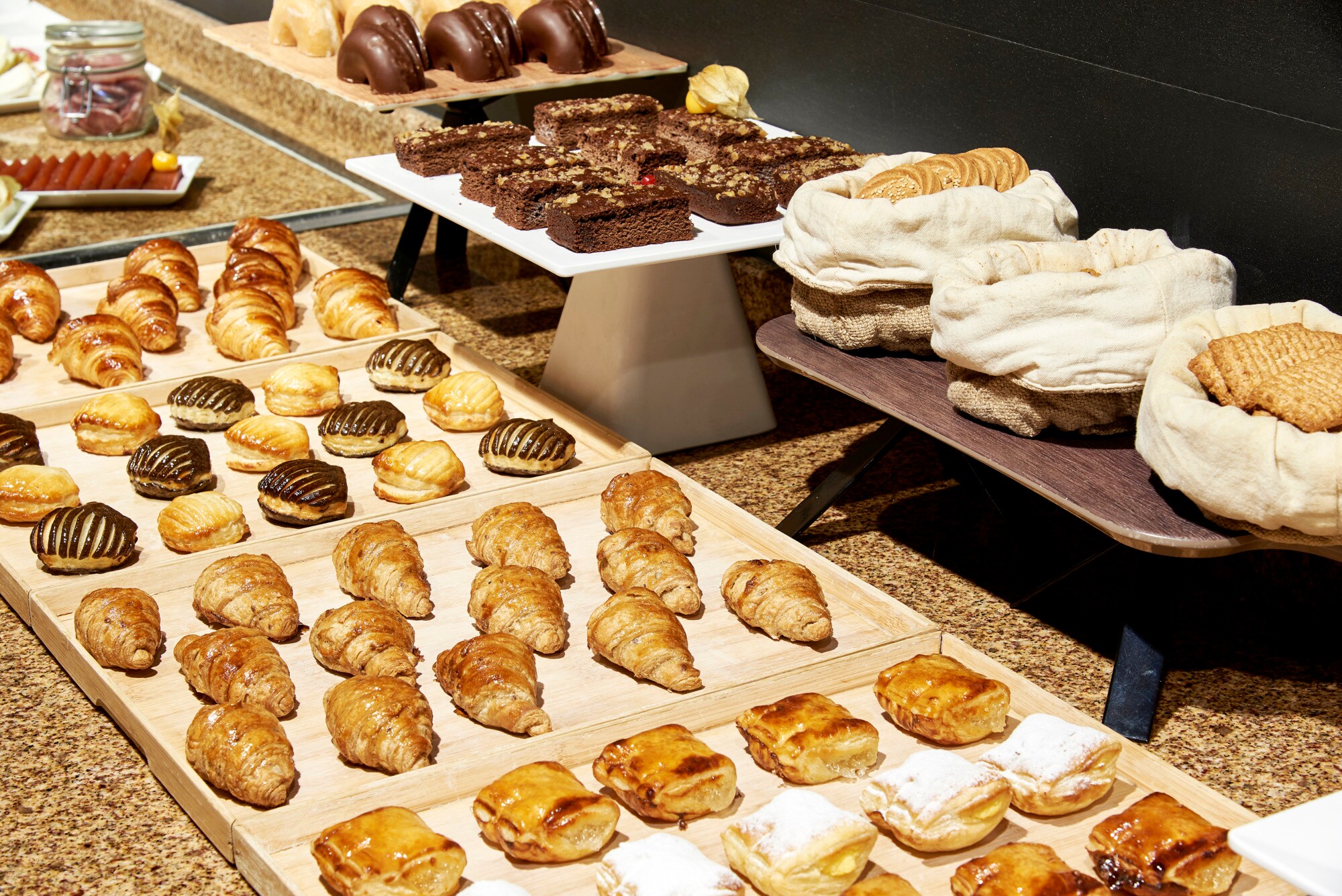 Our restaurant serves a huge buffet breakfast. You’ll find a large selection of fresh fruit and pastries, along with cold cuts and cheeses. Our chefs will also cook your eggs however you like them.