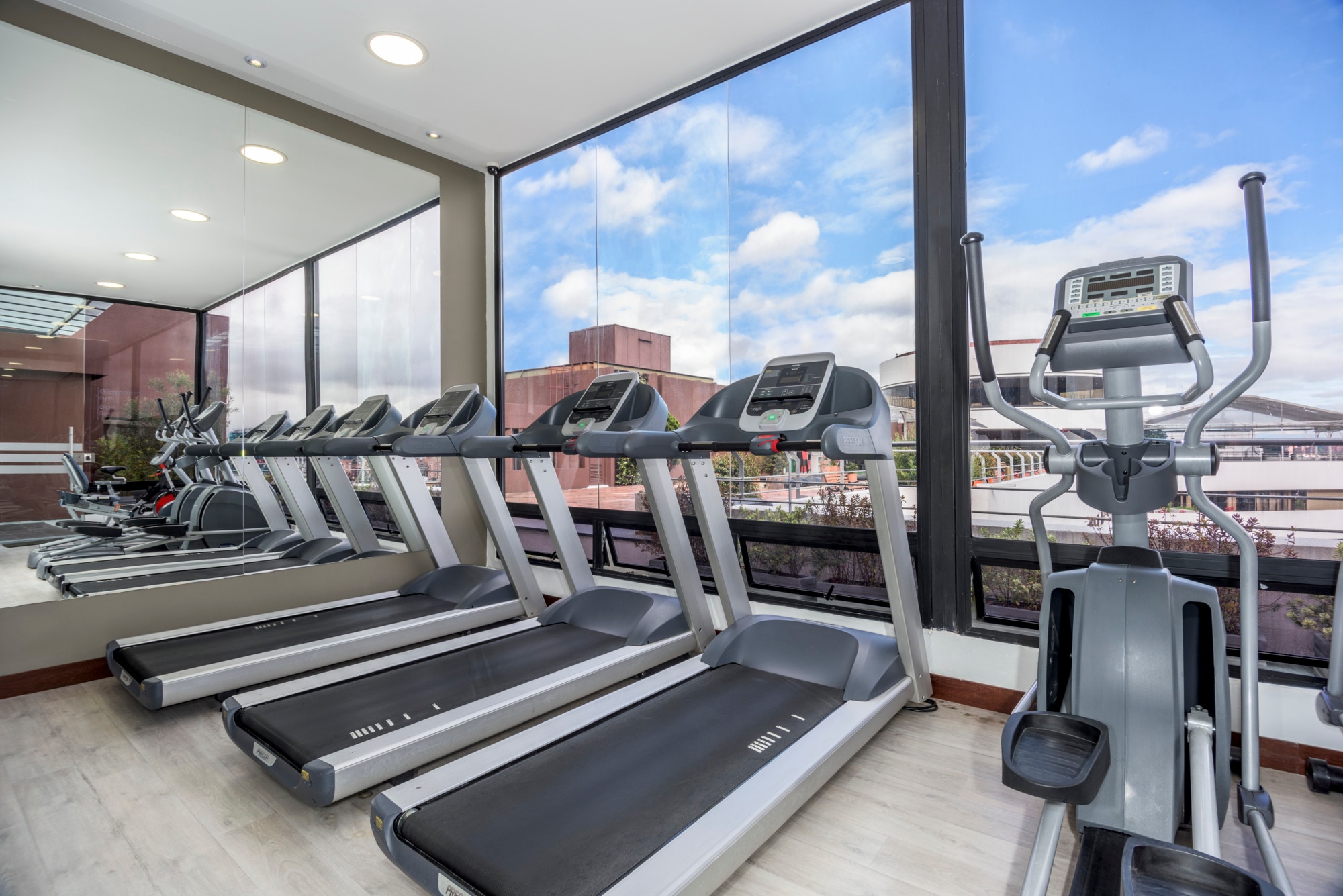 Our gym is free for guests to use. It’s on the 12th floor of the hotel and has an adjoining free sauna.