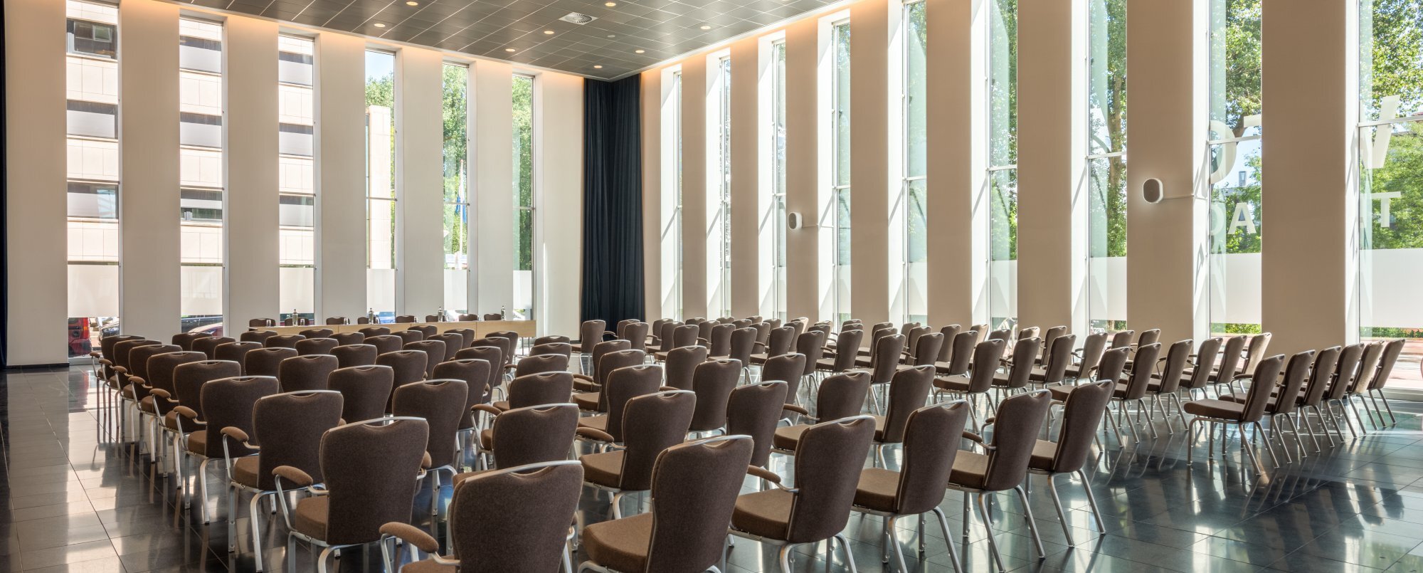 NH Den Haag has 12 conference rooms with the largest room having a capacity of 650 guests in theatre style. For parties and receptions, the space is even big enough for 1000 guests, making it the fourth largest event location in The Hague. The Holland Hall is a true highlight, whether for a presentation or an event. A wonderful location for unforgettable events. The Holland Hall is a high-ceiled space of 520 m2 and has ceiling-high windows, allowing plenty of natural daylight. However, the room can also be completely darkened. The Holland Hall can be reached from the hotel lobby, with a large reception room and nearby meeting rooms. The Holland Hall also has its own entrance on the square side of the hotel. A private dinner, product presentations, meetings or stylish parties - our event planners will be happy to help you set up your perfect event. In addition, there is a wide entrance, which is perfect for events such as car presentations. An impressive location is a good start, but is not complete without fantastic gastronomy and the right decor. Discover more the many options and how we can help you, during a personal or virtual tour. Apart from the Holland Hall, there are 11 other meeting rooms in various sizes that you can reserve.