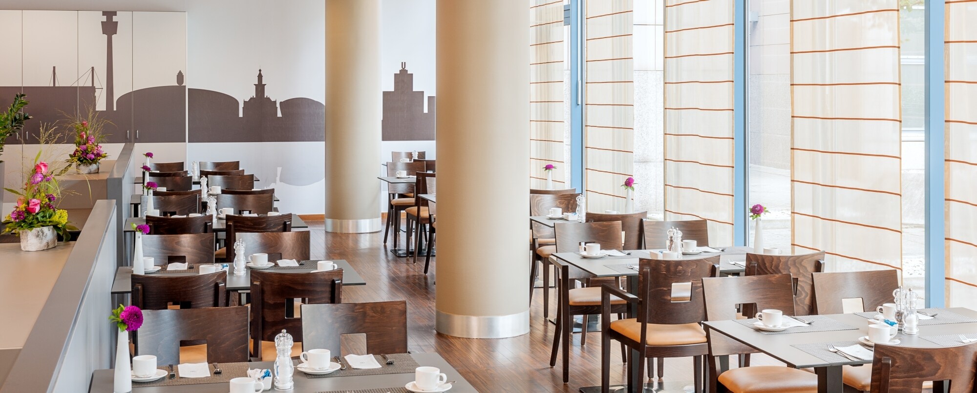 Our breakfast room serves up a delicious buffet every day from 6:00am and from 7:00am on weekends and national holidays. Choose from a wide selection of pastries, breads, fresh fruit, juices, cheeses and more. Plus you can order eggs cooked just the way you like them.