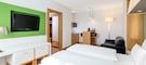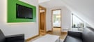 Our 100% non-smoking hotel, which was built in 2011, has 65 rooms – all shiny, bright and new. They have a contemporary décor, with lots of white coloring accentuated with a pop of green.