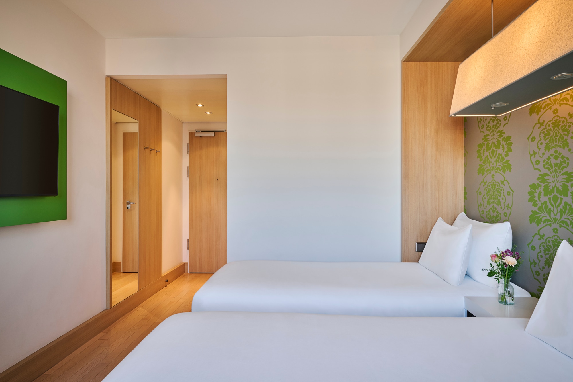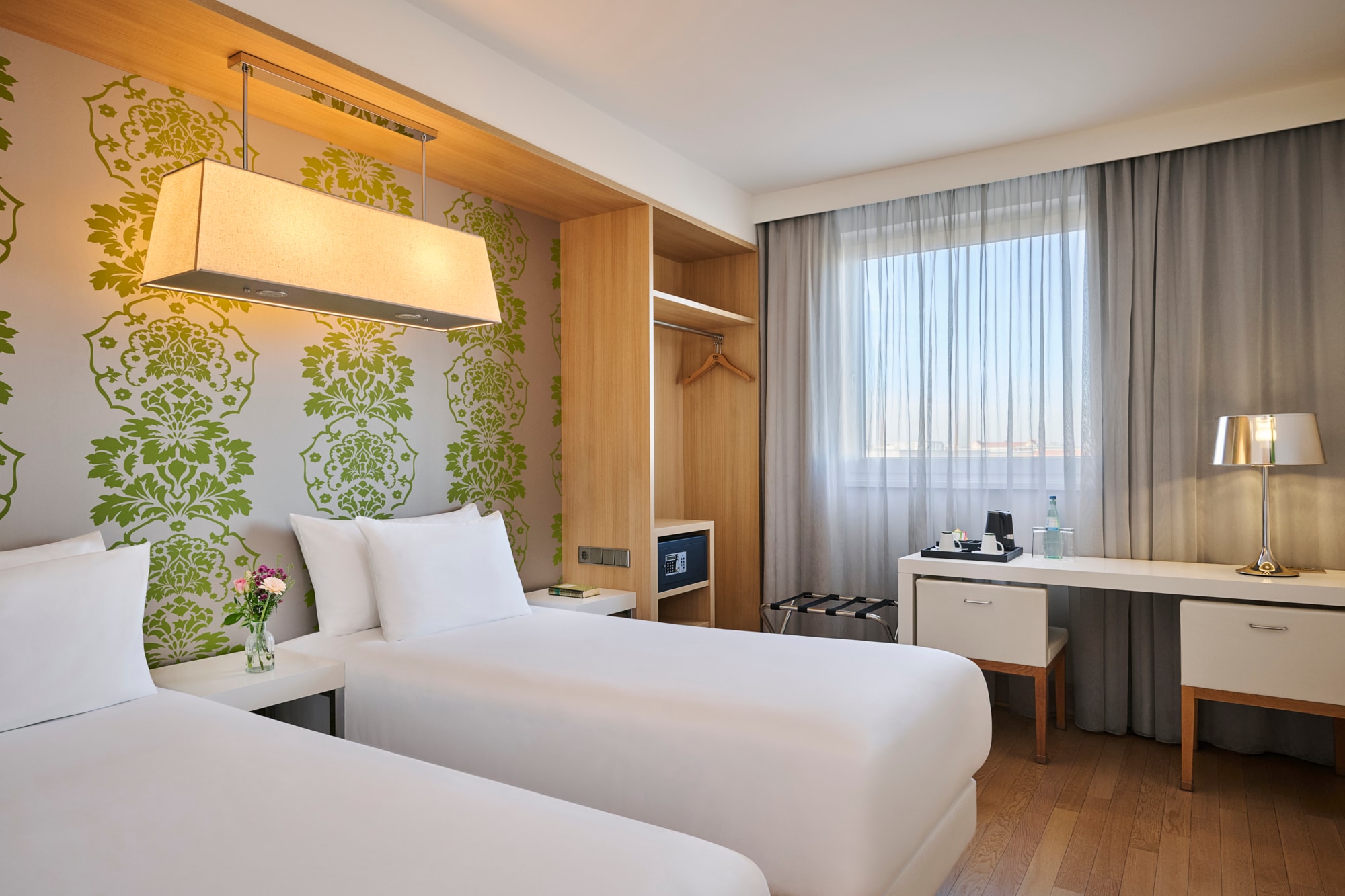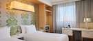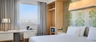 We have 130 standard guestrooms, which are spread over 9 floors. Our rooms are elegantly decorated in shades of white, with green accents. They come with comfortable seating areas, as well as features like Wi-Fi and flatscreen TVs. To make your stay more comfortable, we offer a choice of pillows.