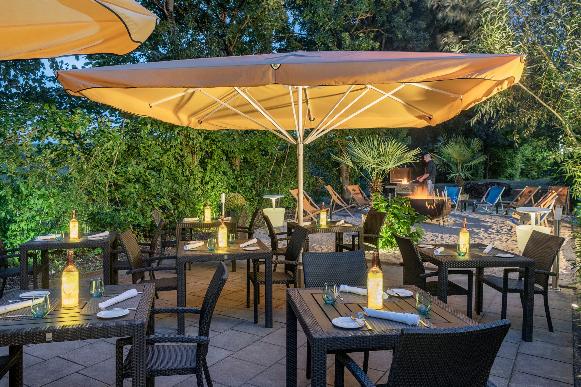 The Schinderbuckel restaurant offers a modern and elegant atmosphere, serving up to 100 guests for a fresh breakfast buffet and savory dishes of international cuisine for lunch and dinner.