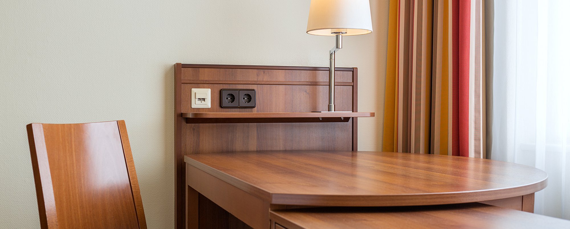 Our rooms come in a Standard size. They’re traditionally furnished with plenty of room for a desk and chair.