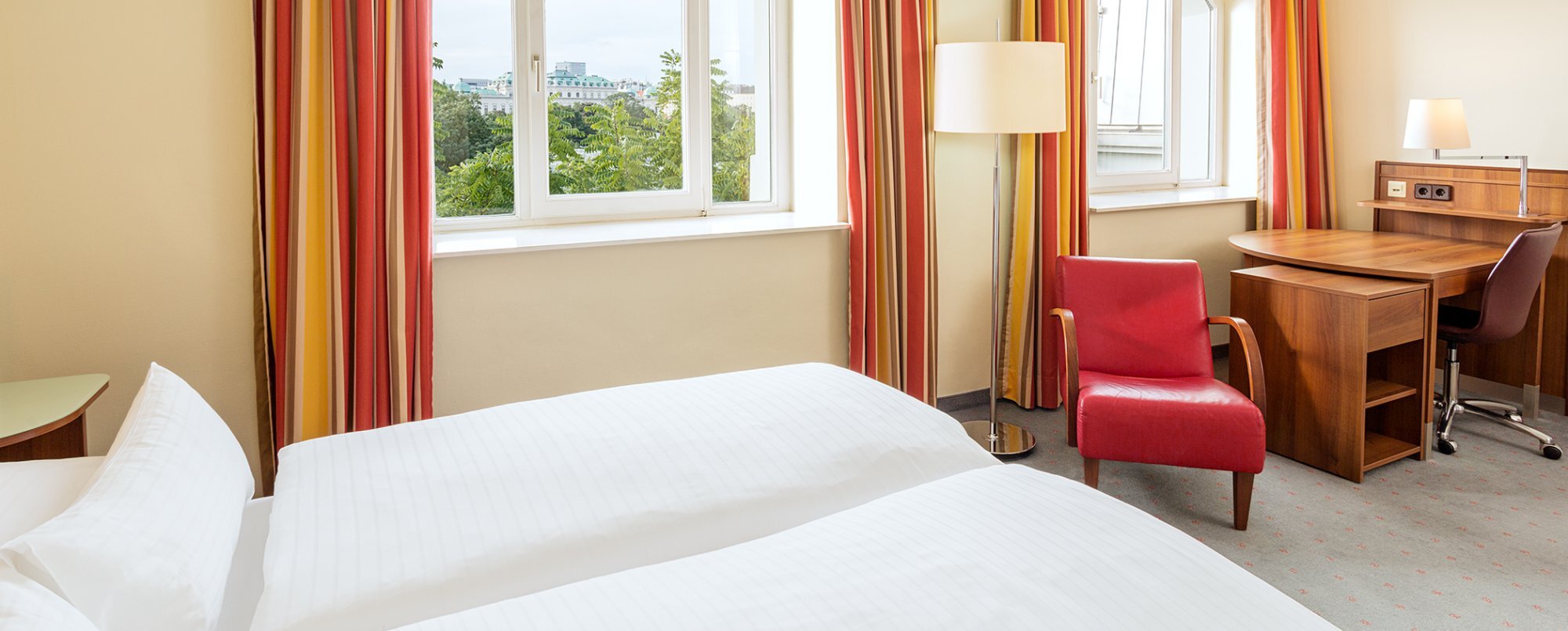 The upper rooms come with views of Belvedere Park, the castle or the botanic garden