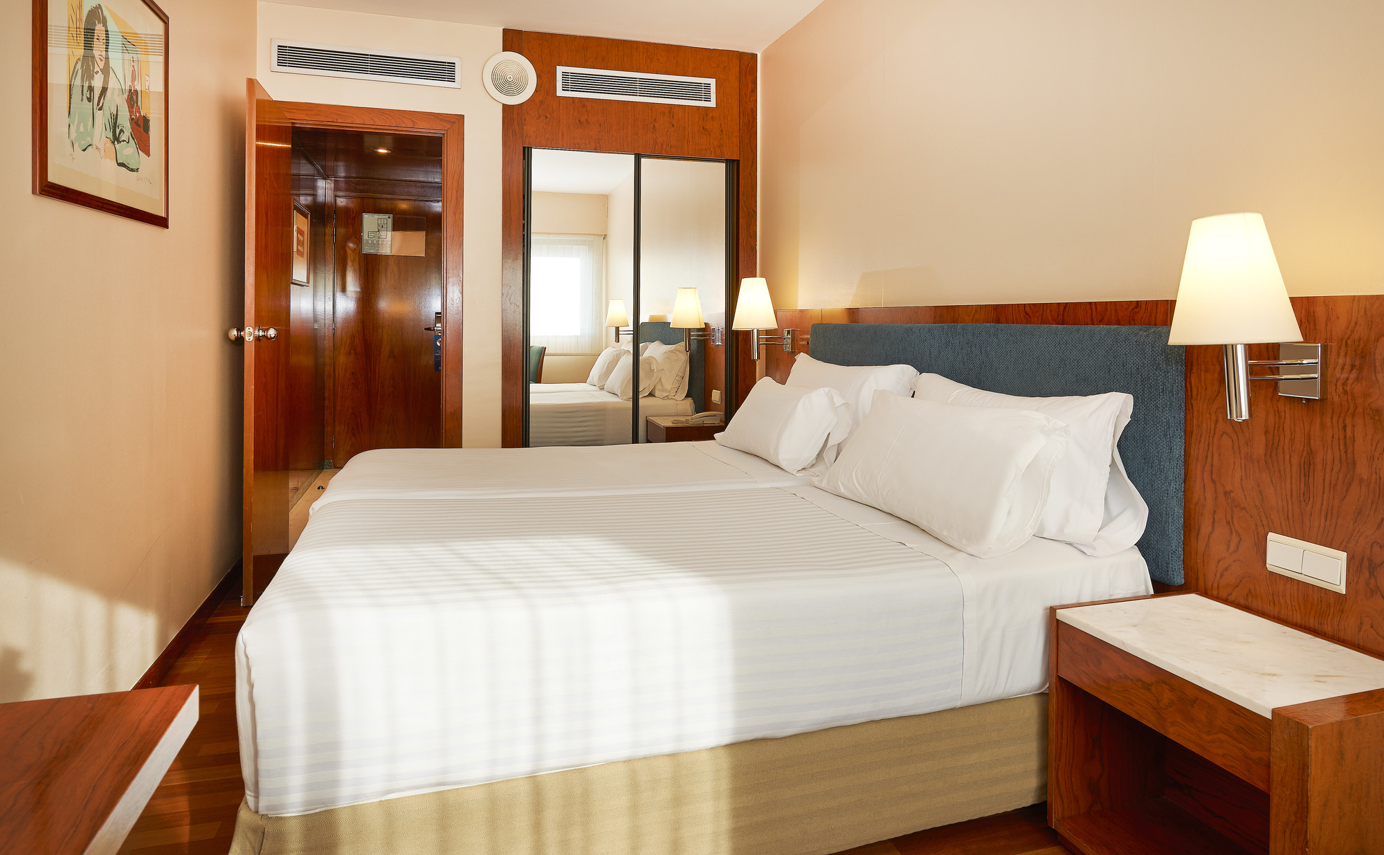 Disponemos de 48 habitaciones distribuidas en 5 pisos. Puedes elegir entre habitaciones Standard y Superiores o una Junior Suite. Todas ellas tienen vista exterior, por lo que son muy agradables y silenciosas, a la vez que tranquilas.