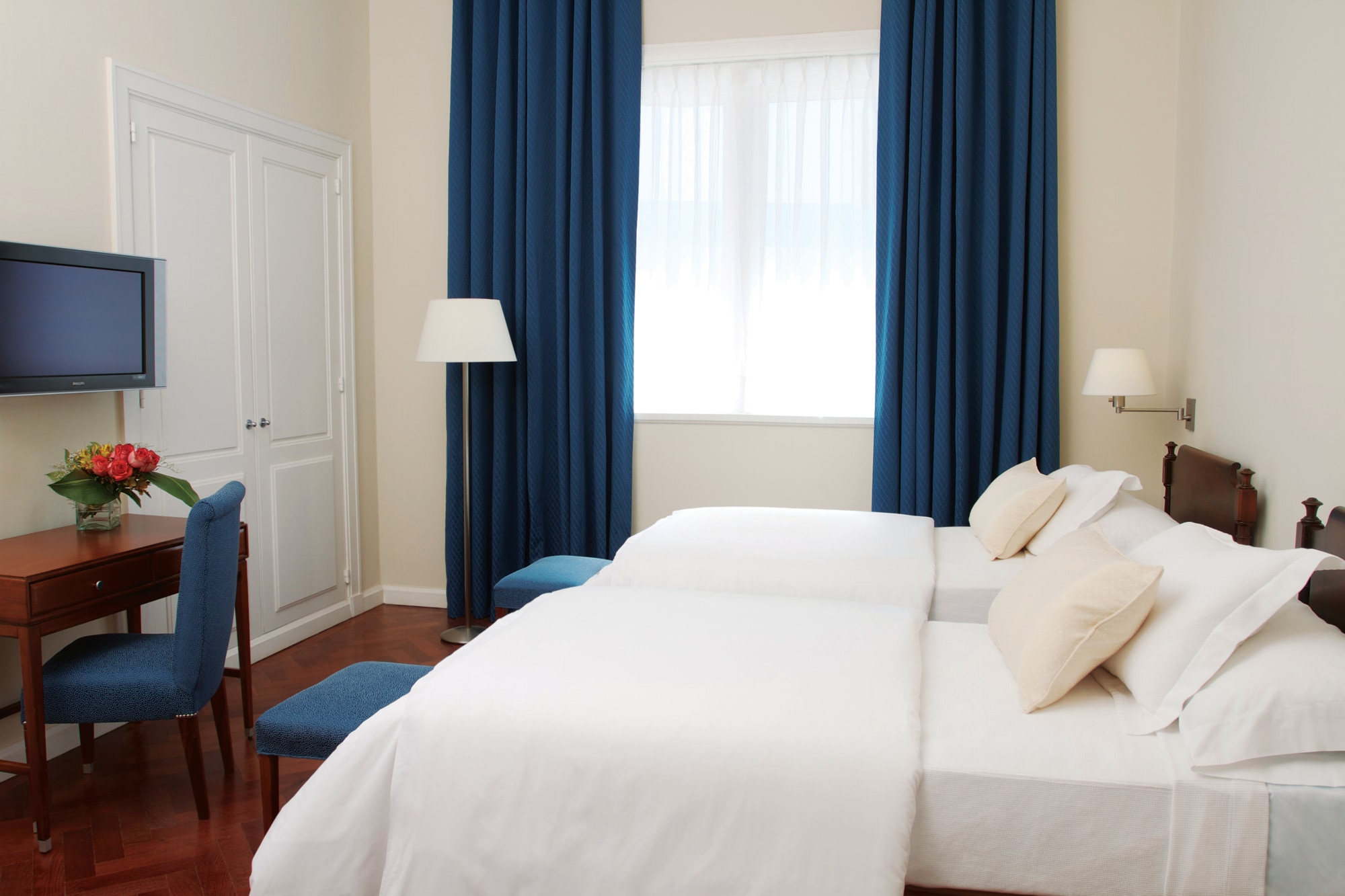 El hotel cuenta con 65 amplias habitaciones. Están decoradas en azul y blanco y conservan muchos detalles de época, como el suelo de madera original del edificio. Dichos detalles se combinan con toques modernos como Wifi gratis y televisión. Puedes elegir entre distintos tipos de habitaciones, incluidas habitaciones Deluxe, Suites y apartamentos.
