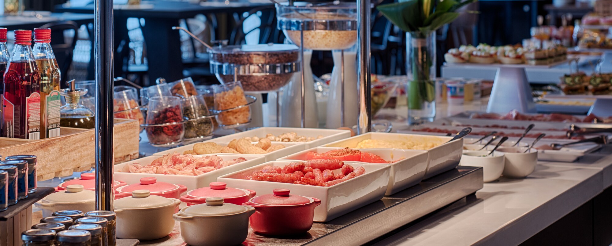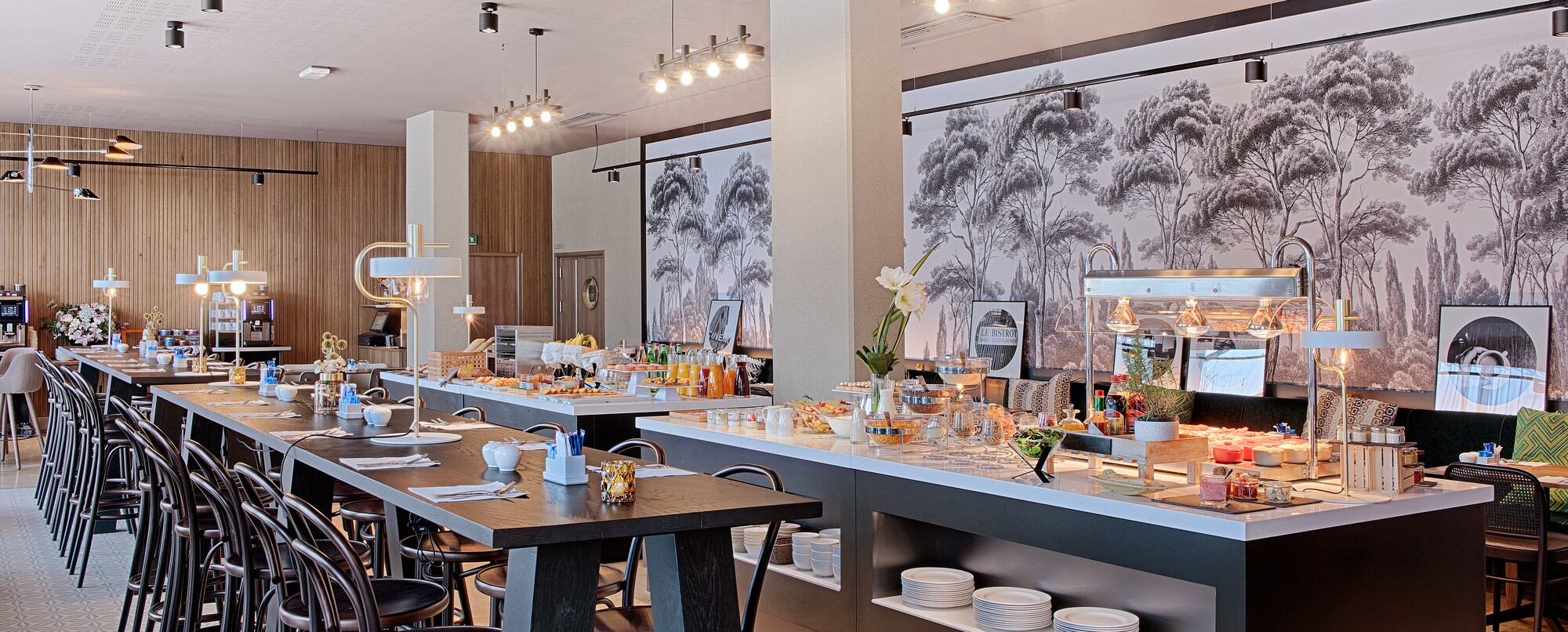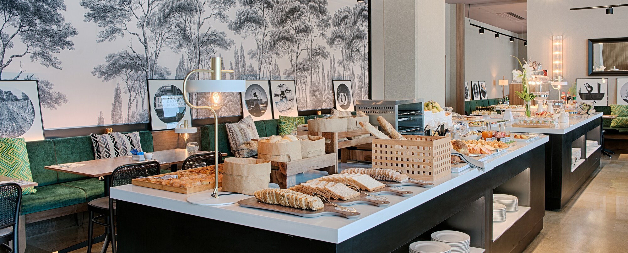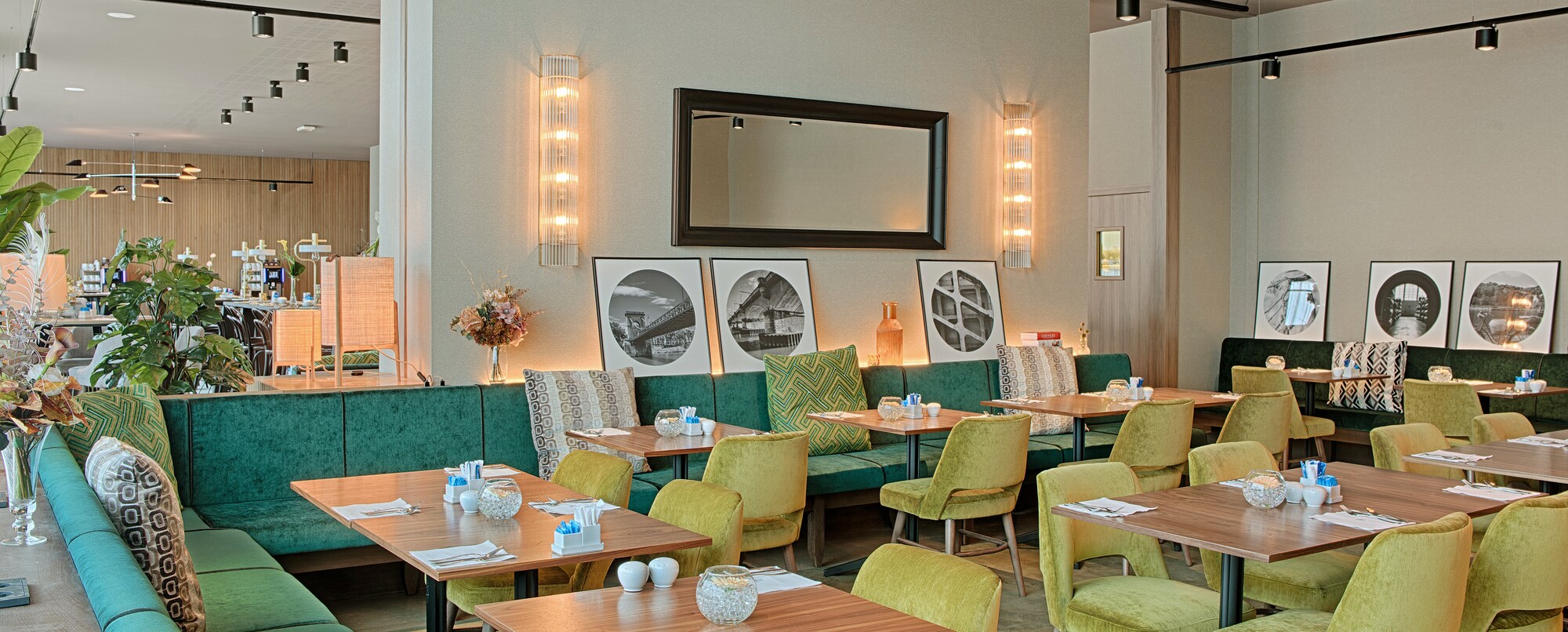 El NH Lyon Airport alberga en sus instalaciones una cafetería, un restaurante y un bar. El Café-Saint Ex es un lugar acogedor que ofrece una selección de repostería recién hecha, incluidas especialidades francesas. Durante el día, también puedes pedir algo para picar, un sándwich o una ensalada. Les 100 Ciels, el restaurante principal, abre a la hora del almuerzo y la cena, y ofrece tanto un buffet como servicio a la carta. También puedes pasarte por Vol de Nuit, el bar del hotel. Sirven una amplia carta de bebidas y cócteles. Por las mañanas, se suma a estas opciones el famoso desayuno de NH Hotels, con su selección de repostería, fruta, yogures, huevos, embutido y refrescantes zumos. Sin duda, la oferta gastronómica del NH Lyon Airport es mucho más interesante que la de un hotel de aeropuerto convencional.