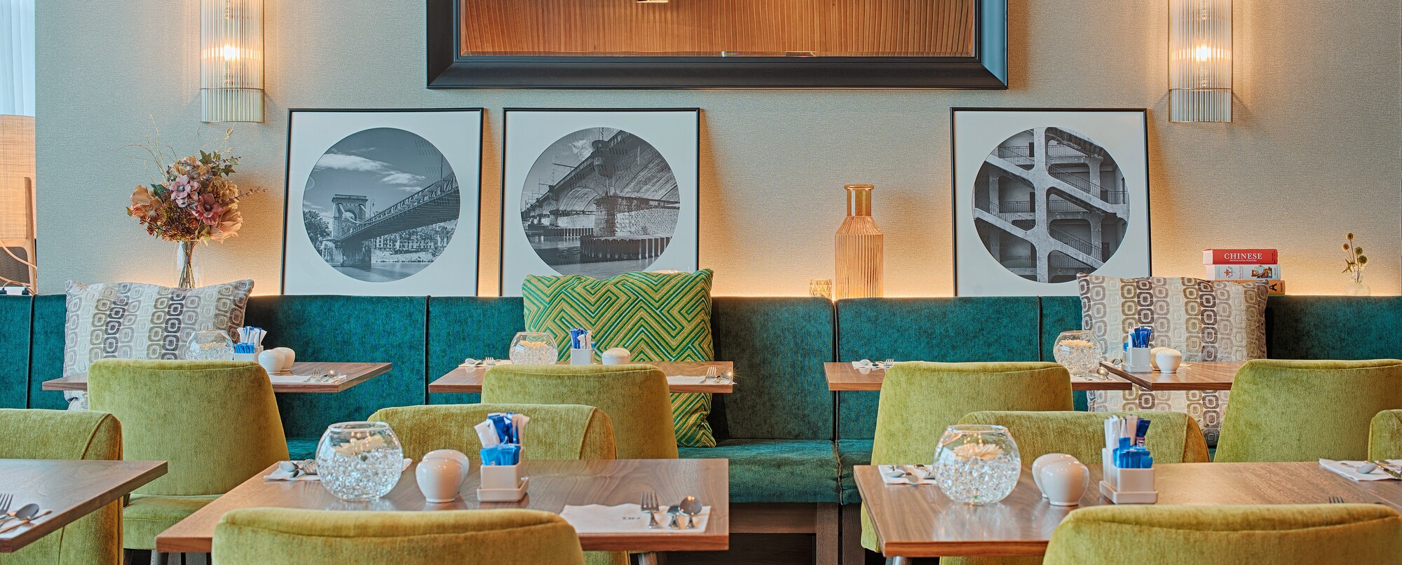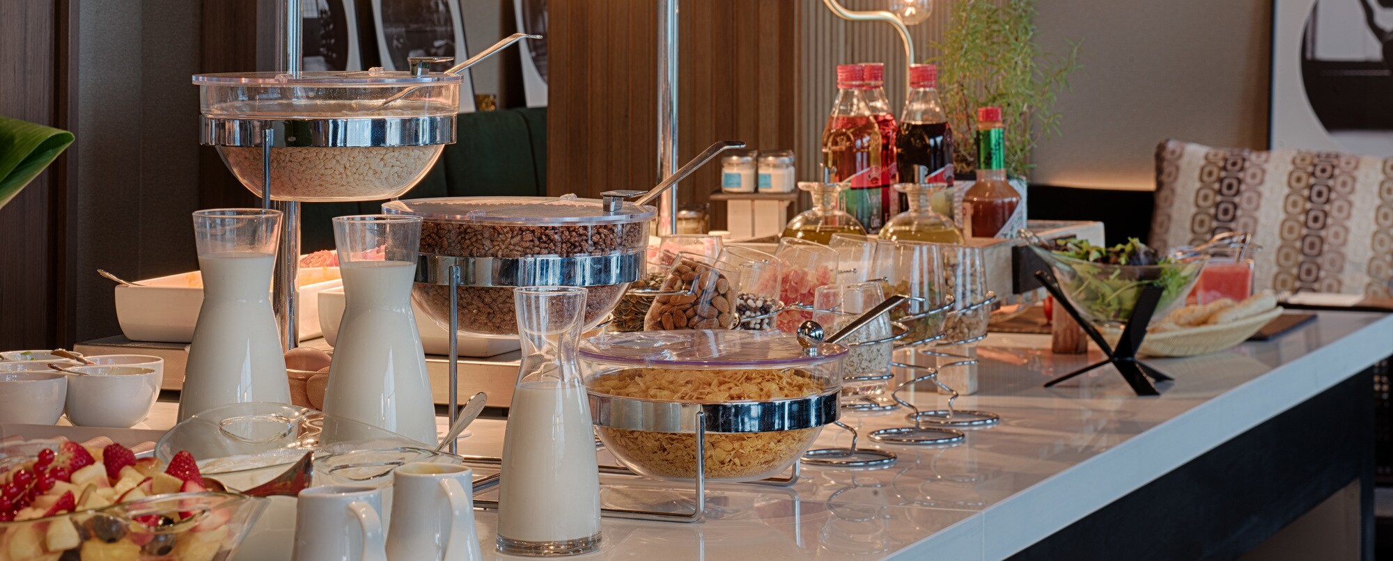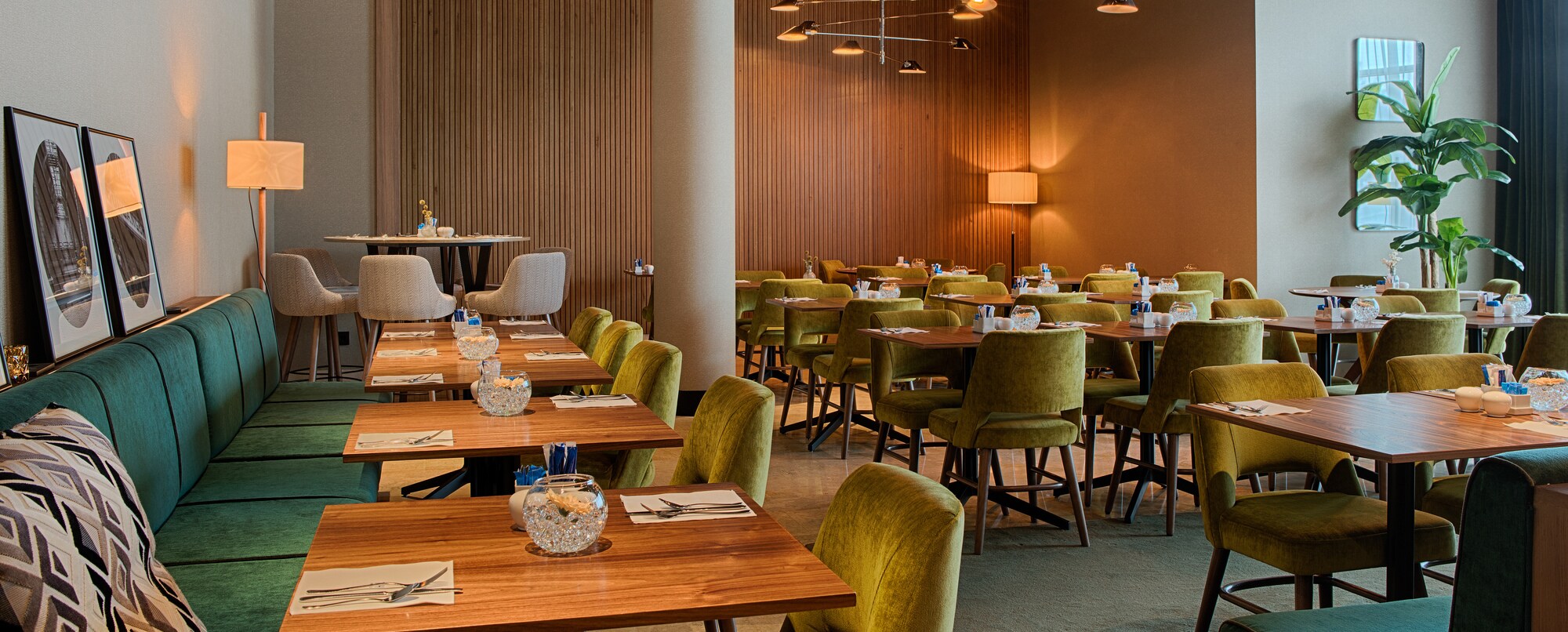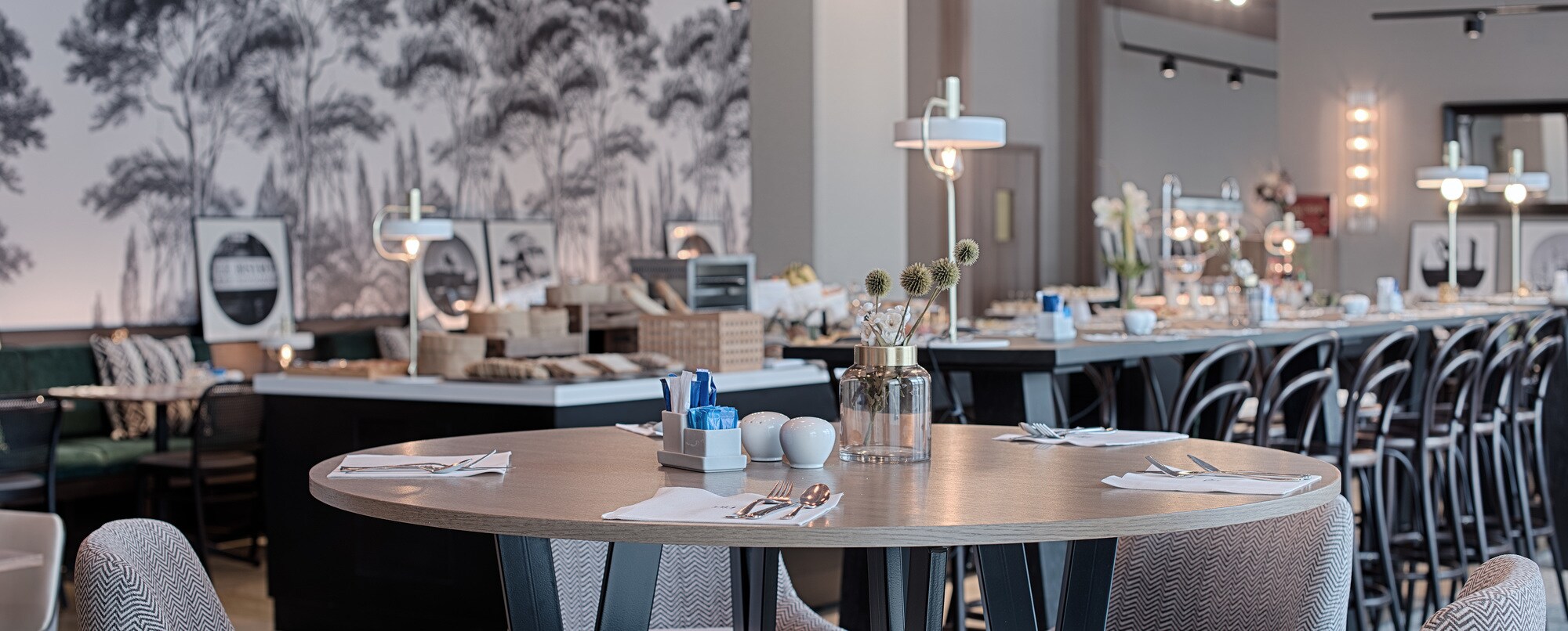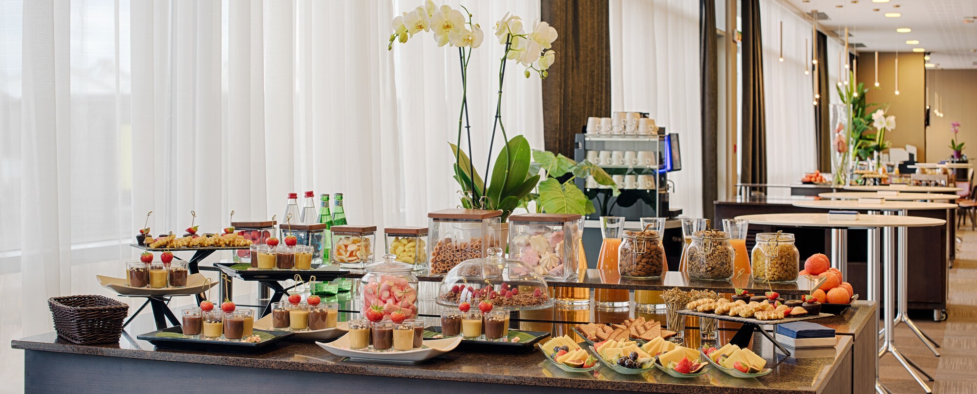 El NH Lyon Airport alberga en sus instalaciones una cafetería, un restaurante y un bar. El Café-Saint Ex es un lugar acogedor que ofrece una selección de repostería recién hecha, incluidas especialidades francesas. Durante el día, también puedes pedir algo para picar, un sándwich o una ensalada. Les 100 Ciels, el restaurante principal, abre a la hora del almuerzo y la cena, y ofrece tanto un buffet como servicio a la carta. También puedes pasarte por Vol de Nuit, el bar del hotel. Sirven una amplia carta de bebidas y cócteles. Por las mañanas, se suma a estas opciones el famoso desayuno de NH Hotels, con su selección de repostería, fruta, yogures, huevos, embutido y refrescantes zumos. Sin duda, la oferta gastronómica del NH Lyon Airport es mucho más interesante que la de un hotel de aeropuerto convencional.