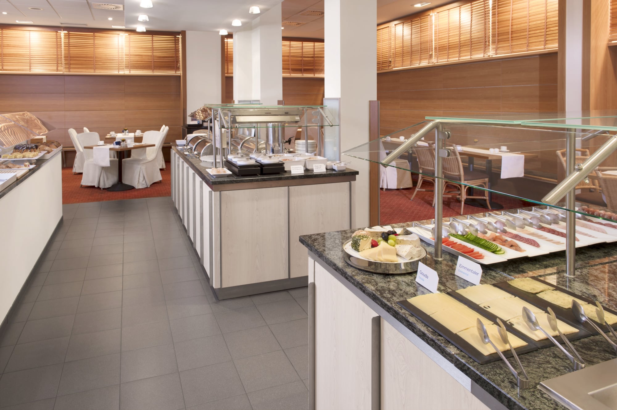 Pour le petit-déjeuner, nous vous proposons le restaurant Hazienda, à côté de la réception. Il offre un excellent buffet comprenant notre spécialité : les saucisses de Nuremberg.