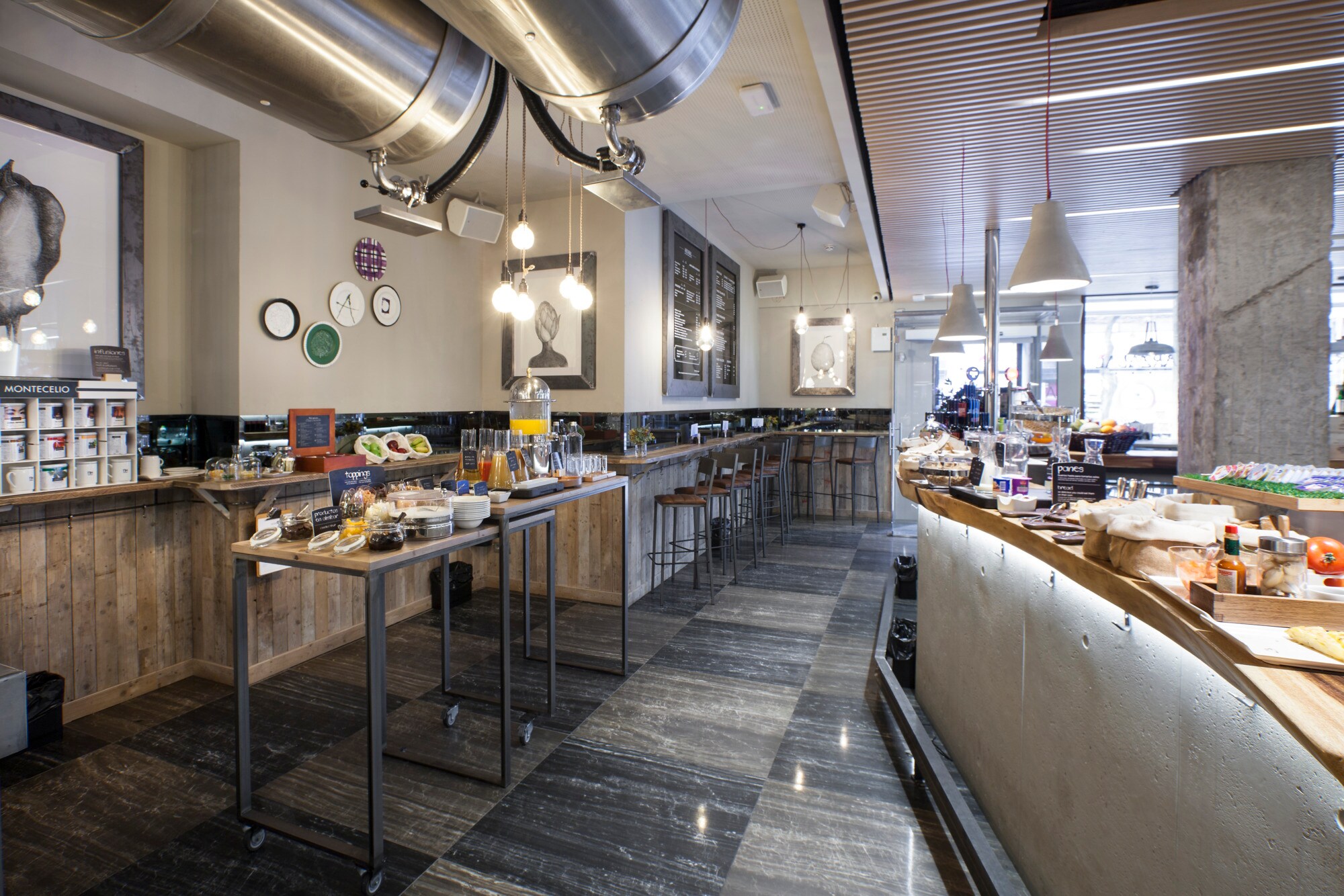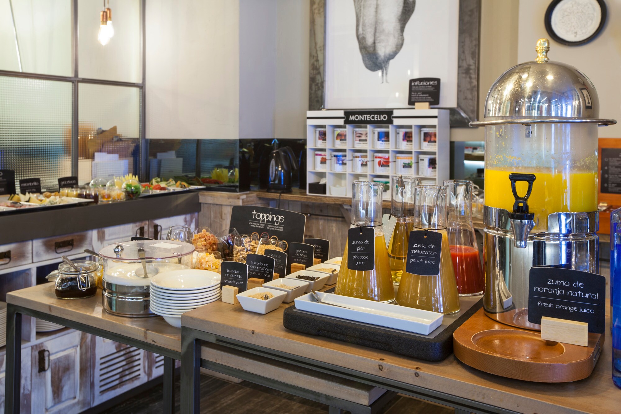 Notre petit-déjeuner buffet copieux mais équilibré est une excellente manière de bien commencer votre journée. Servi dans notre salle de petit-déjeuner aux murs lambrissés, il propose tout un assortiment de plats de première fraîcheur chaque matin, notamment des fruits, des viennoiseries et pâtisseries, des pains, cinq différents types de jus de fruits et des spécialités espagnoles telles que les churros et les tortillas.