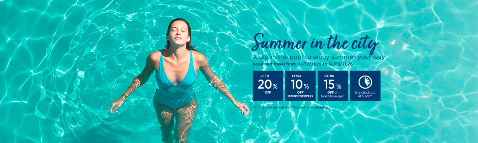 Enjoy summer in hotels with a pool! Get up to 30% off at our hotels to enjoy summer in our urban retreats.