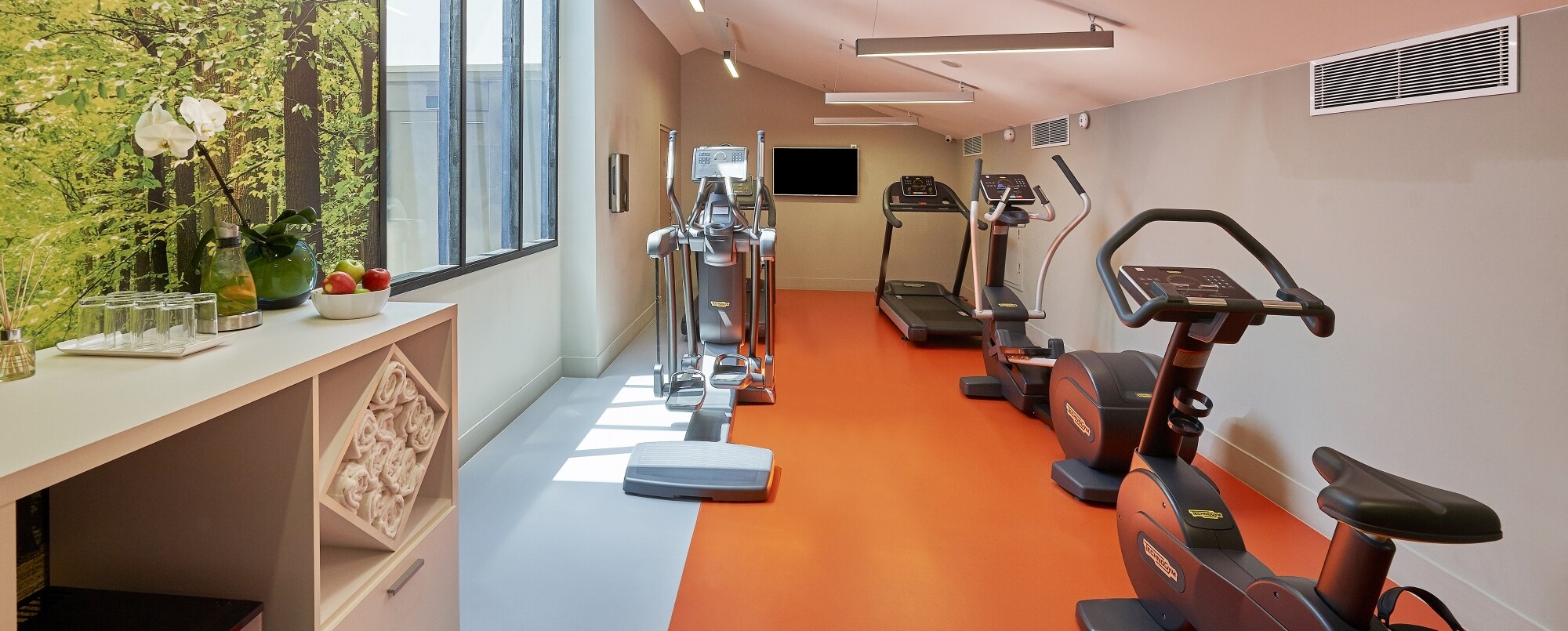 Los huéspedes pueden hacer ejercicio en el gimnasio gratuito del hotel, ubicado en la sexta planta.