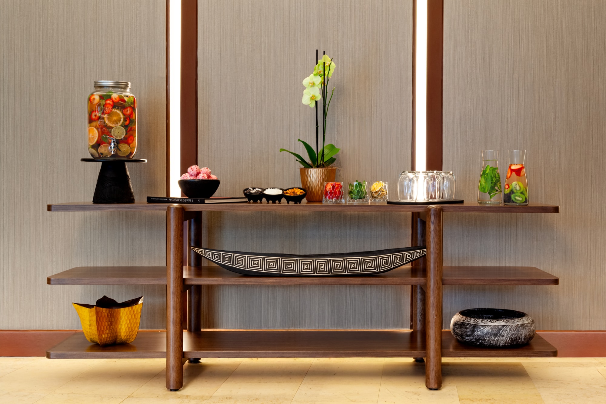 Para além do restaurante, que serve refeições e um buffet de pequeno-almoço, os hóspedes podem desfrutar de cocktails no bar do hotel do 1º piso.