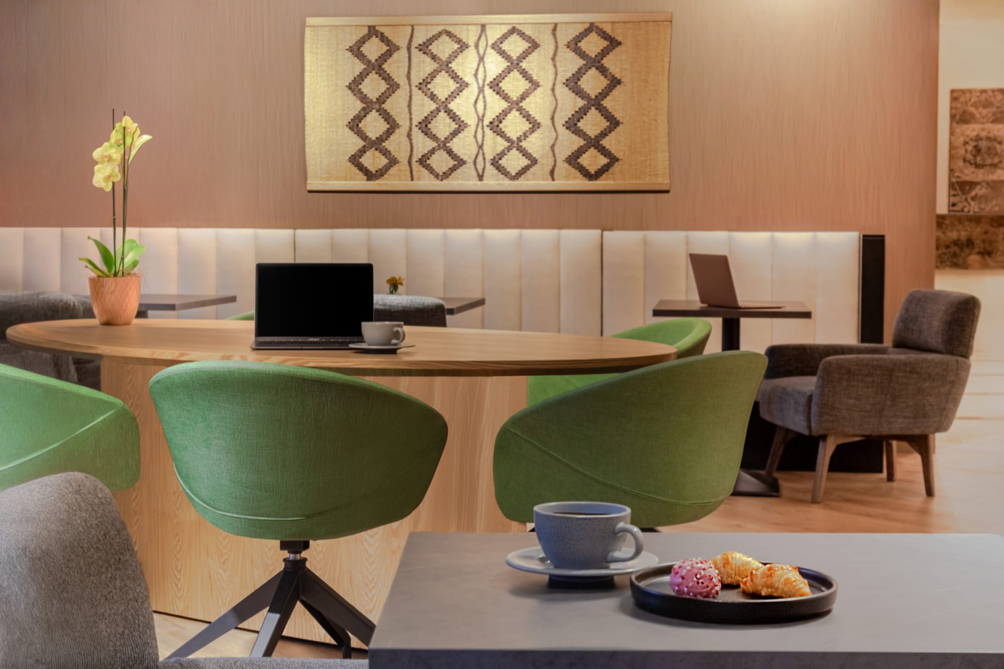 - Suites elegantemente decoradas e com espaços separados para dormir e trabalhar