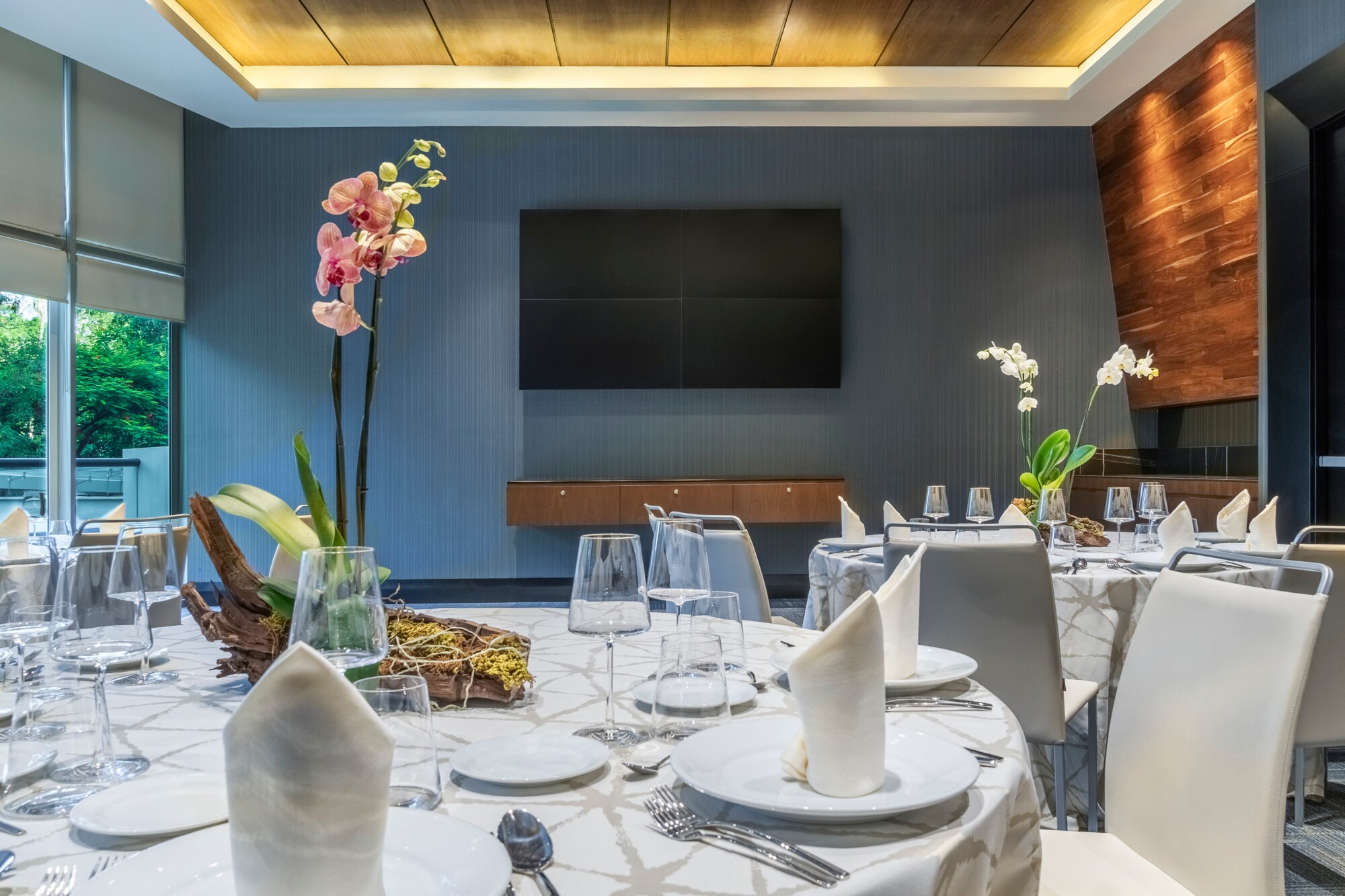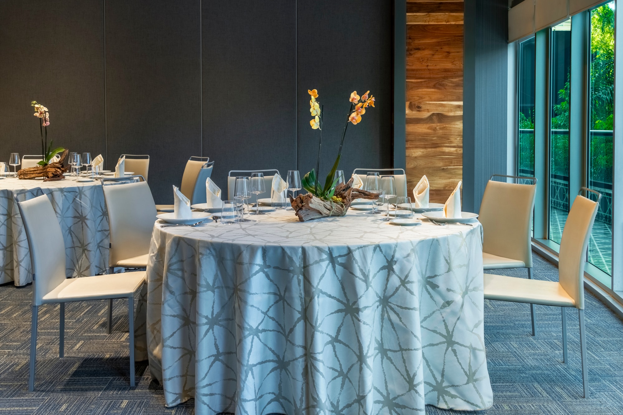 Também podemos organizar festas privadas para um máximo de 160 convidados. Para casamentos, os nossos chefes de cozinha podem ajudar a elaborar um menu personalizado para o seu banquete de casamento.