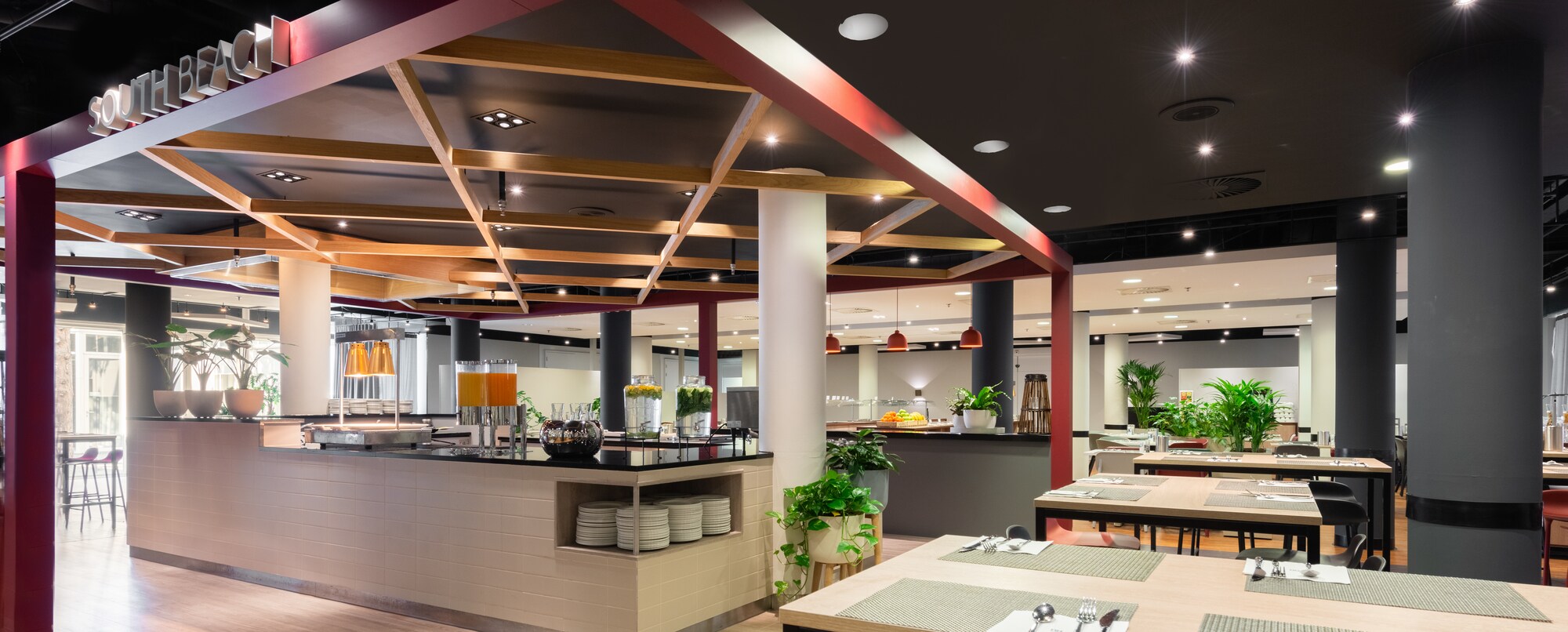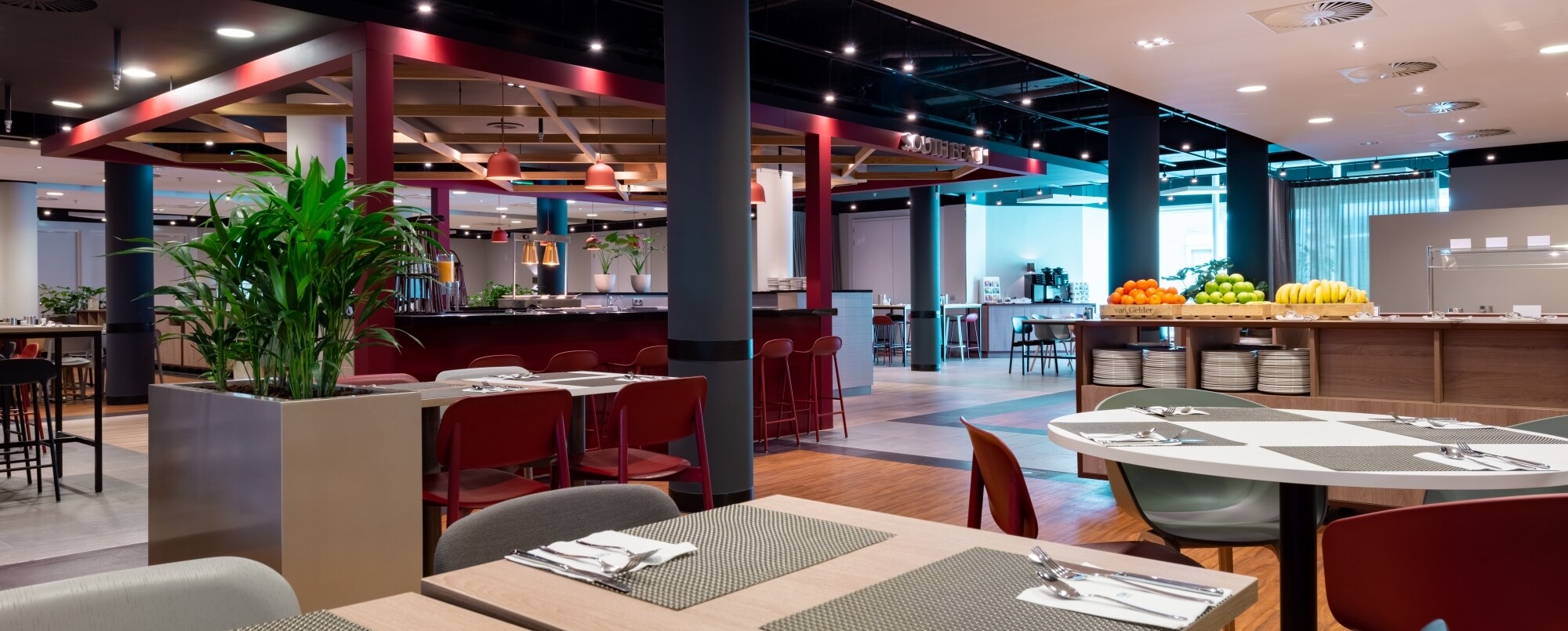 Ao pequeno-almoço servimos um buffet com uma seleção fantástica juntamente com pratos quentes, como bacon e ovos mexidos. Para outras refeições, o nosso restaurante à la carte oferece refeições deliciosas e é especializado em pratos grelhados.