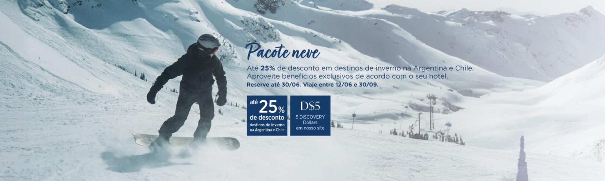 Até 25% de desconto em nossas exclusivas escapadas de inverno. A diversão na neve está te esperando: Garanta sua aventura reservando agora e aproveite benefícios exclusivos, paisagens espetaculares e momentos inesquecíveis.